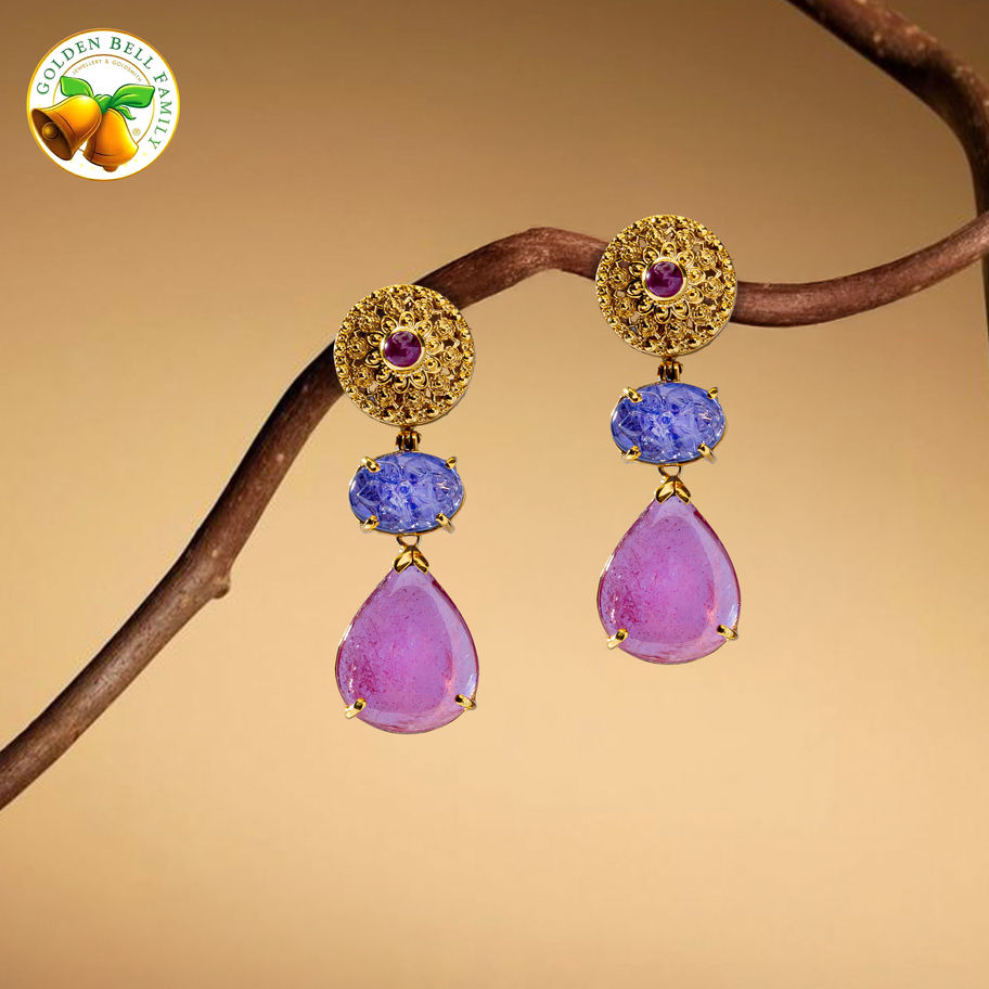 ရဲရင့်သော ပတ္တမြား (Ruby)၊ တည်ငြိမ်သော နီလာ (Blue Sapphire) နှင့် အေးမြသော မြ (Emerald) ကျောက်မြတ်သုံးမျိုးကို အချိုးကျကျ ပေါင်းစပ်ကာ အဆင့်မြင့်စိန်ပွင့်များဖြင့် ဝန်းရံစီခြယ်ထားသော High Jewellery နားကပ်ဖြစ်ပါသည်။ ၂၄ ကေ ရွှေစင်ရွှေသားပေါ်တွင် ကျောက်မျက်တစ်ခုချင်းစီ၏ အရောင်အသွေးပေါ်လွင်အောင် အနုစိတ်ပုံဖော်ထားသောကြောင့် ဝတ်ဆင်သူအား နန်းဆန်ထည်ဝါပြီး ပြည့်စုံသော အရှိန်အဝါကို ပေးစွမ်းနိုင်ပါသည်။ အထူးပွဲတက် အခမ်းအနားကြီးများနှင့် ဂုဏ်သရေရှိ ပွဲလမ်းသဘင်များတွင် လူကြီးမင်းတို့၏ အဆင့်အတန်းကို အထူးပေါ်လွင်စေမည့် တန်ဖိုးကြီး လက်ရာမွန် ရတနာတစ်စုံ ဖြစ်ပါသည်။